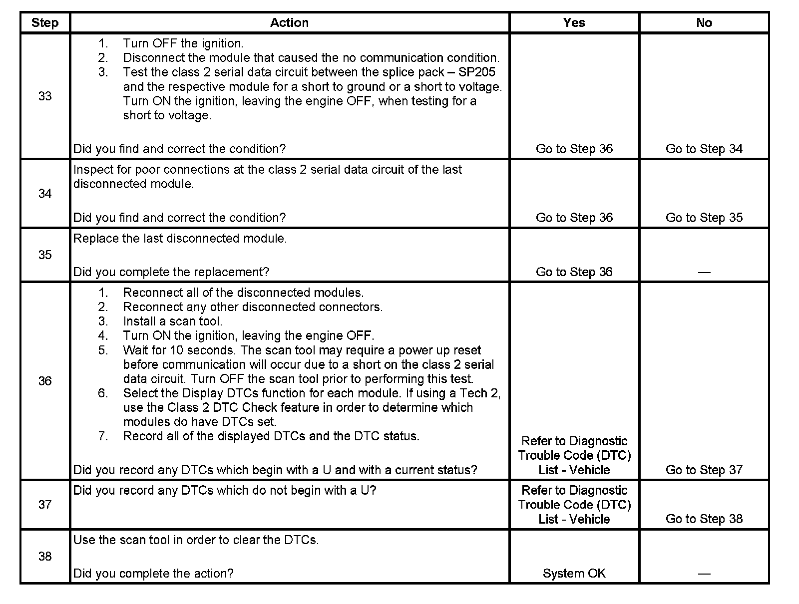 36. If there are no current DTCs that begin with a U, the communication malfunction has been repaired.