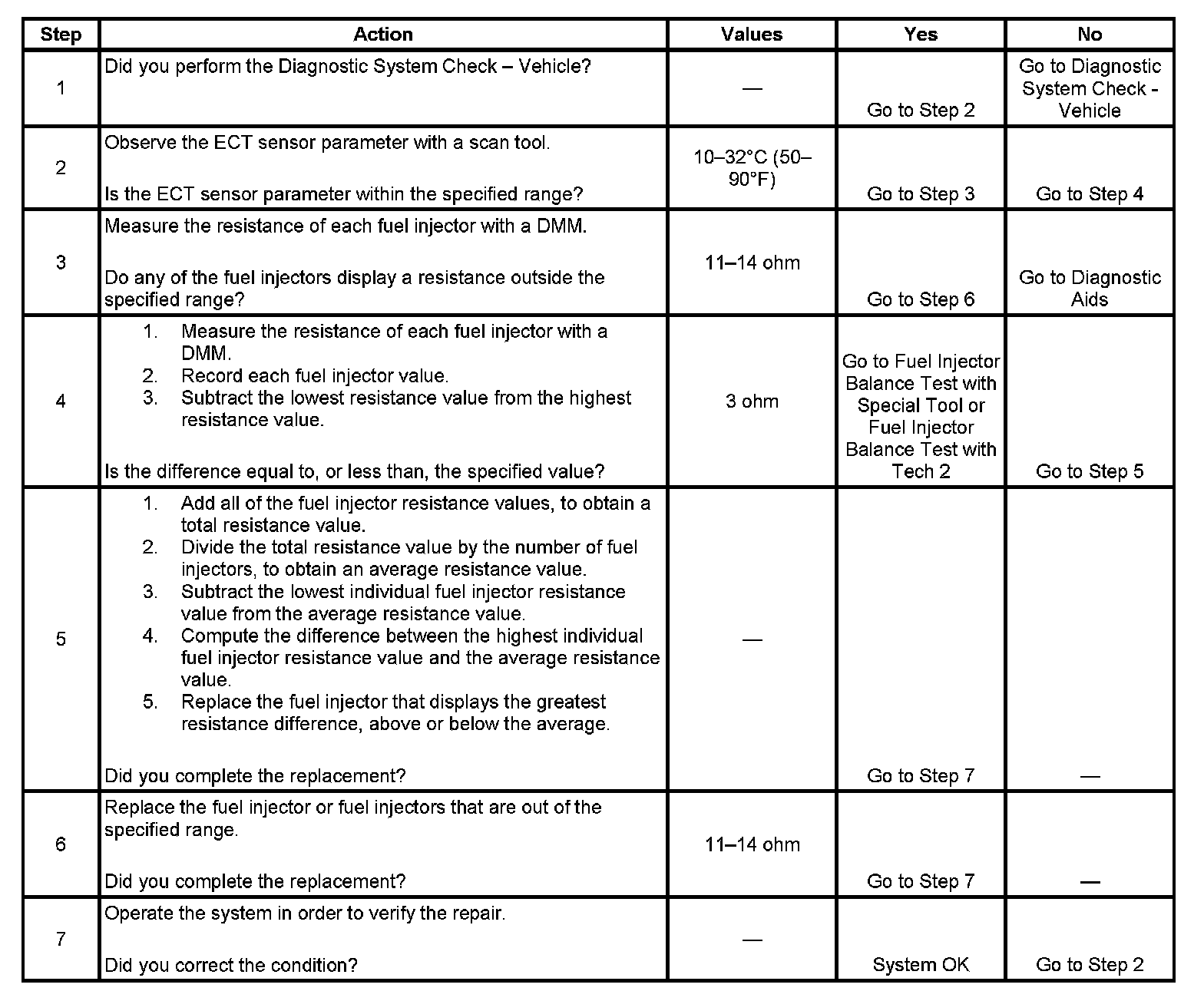 - If the fuel injector coil test does not isolate the condition perform the fuel injector balance test. Refer to Fuel Injector Balance Test with Special Tool or Fuel Injector Balance Test with Tech 2. Fuel Injector Balance Test With Special Tool Fuel Injector Balance Test With Tech 2