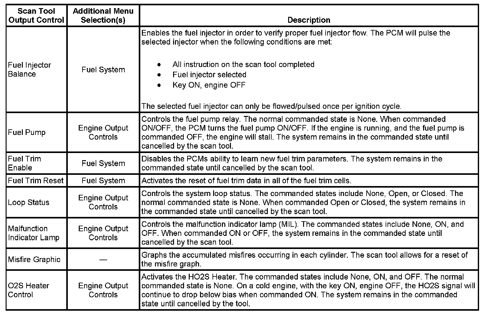 Scan Tool Output Controls
