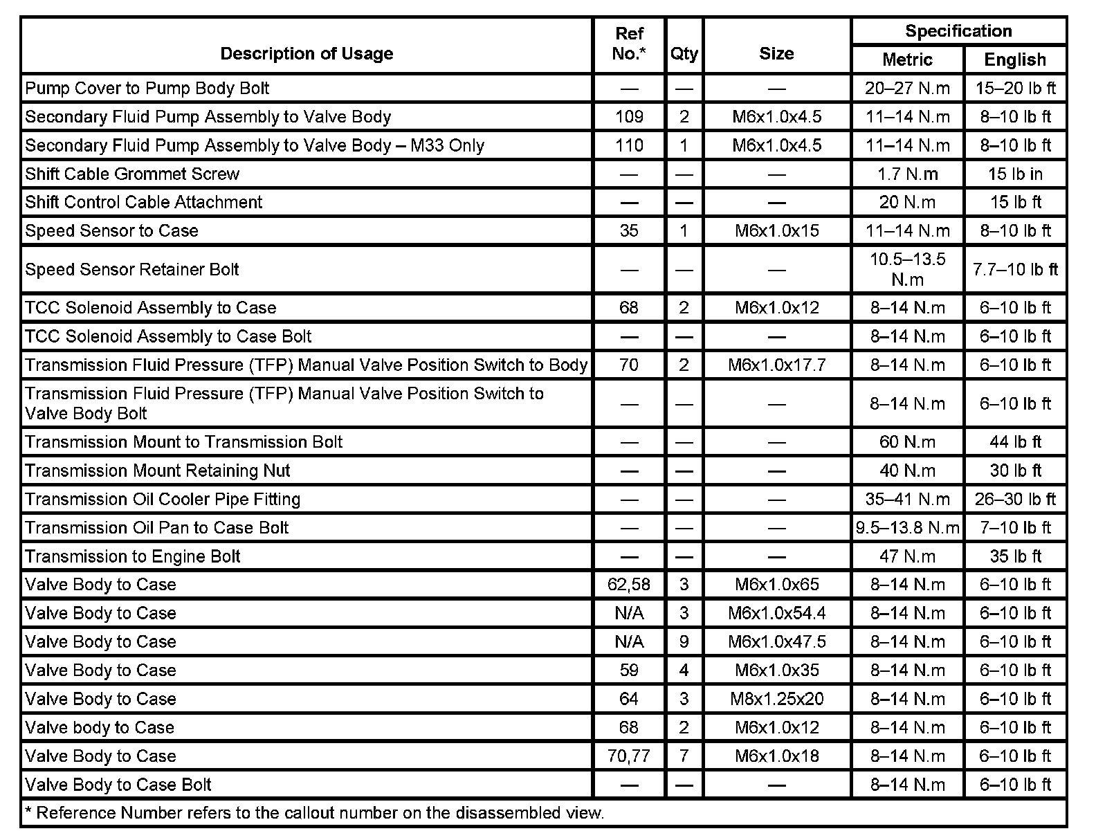 Fastener Tightening Specifications: