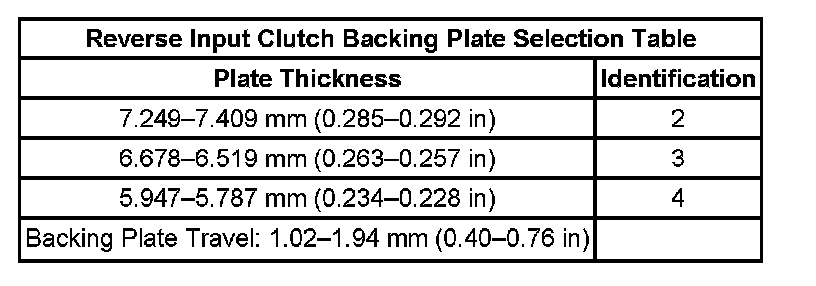 Reverse Input Clutch Backing Plate Selection Table: