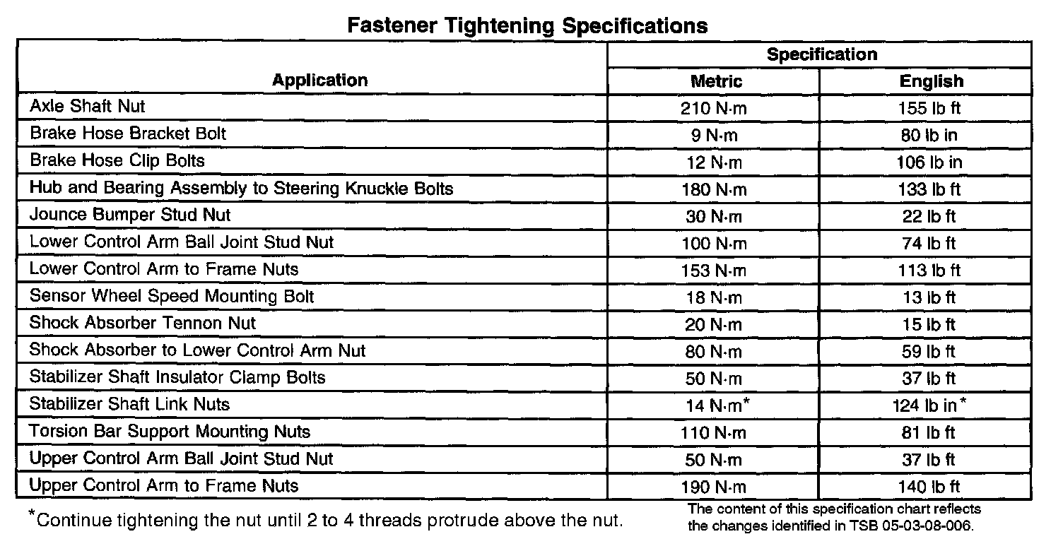 Fastener Tightening Specifications
