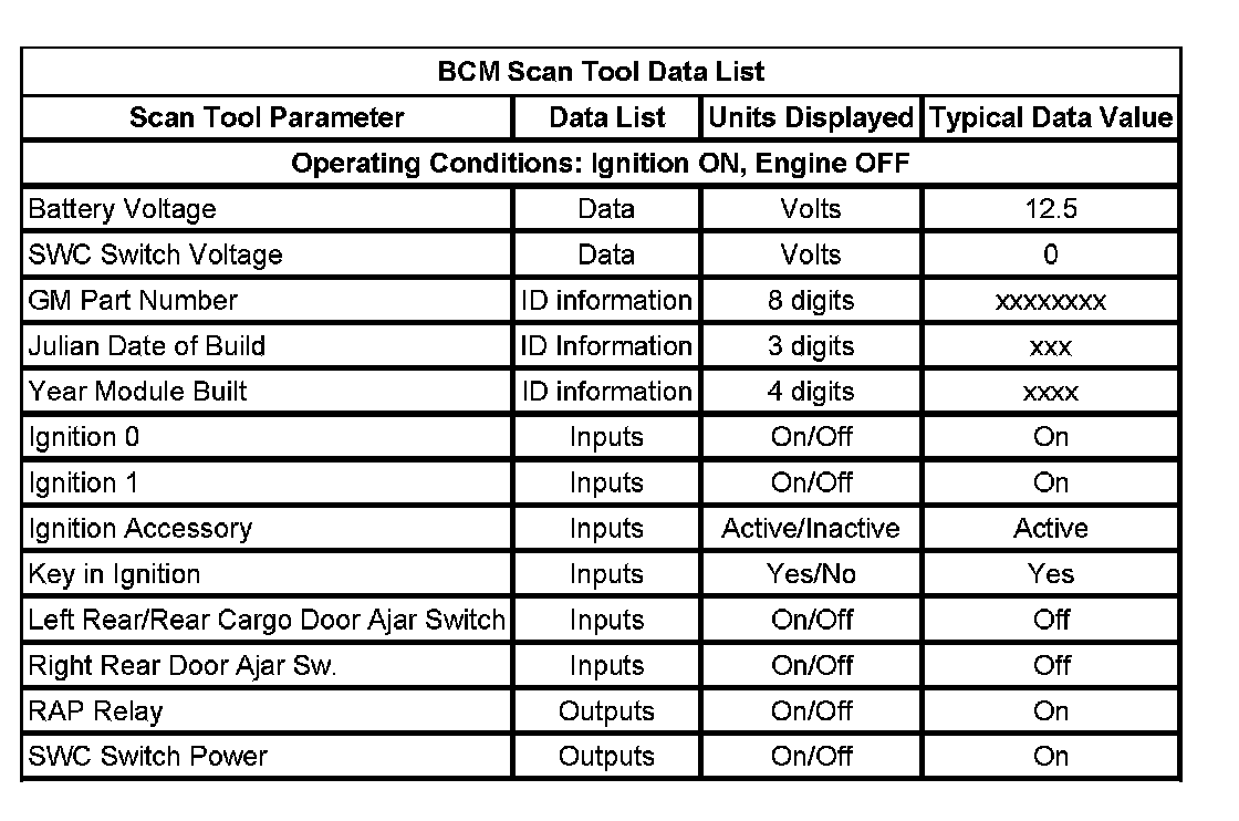 BCM Scan Tool Data List: