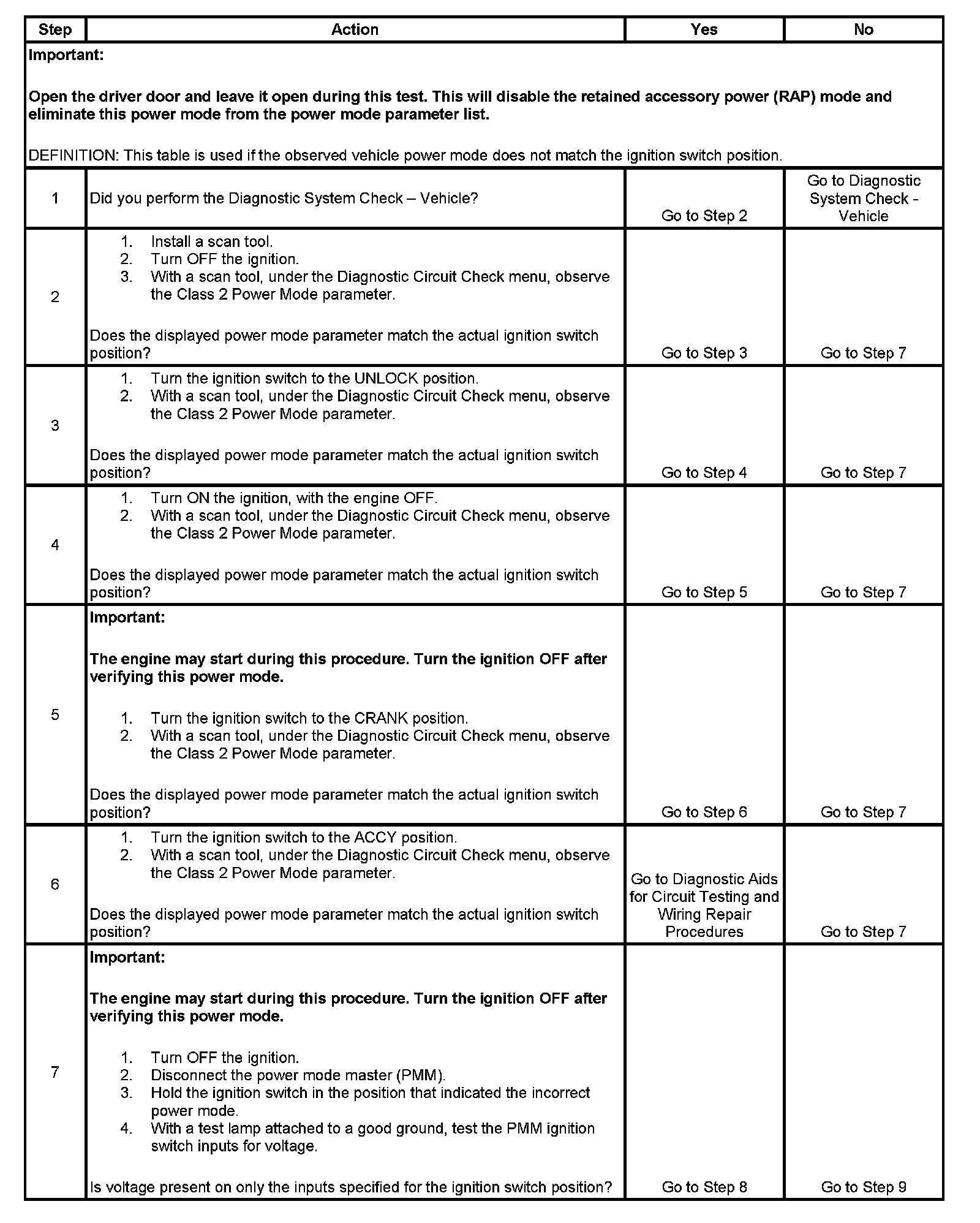 7. This step tests for battery voltage on the signal circuits that are not required.