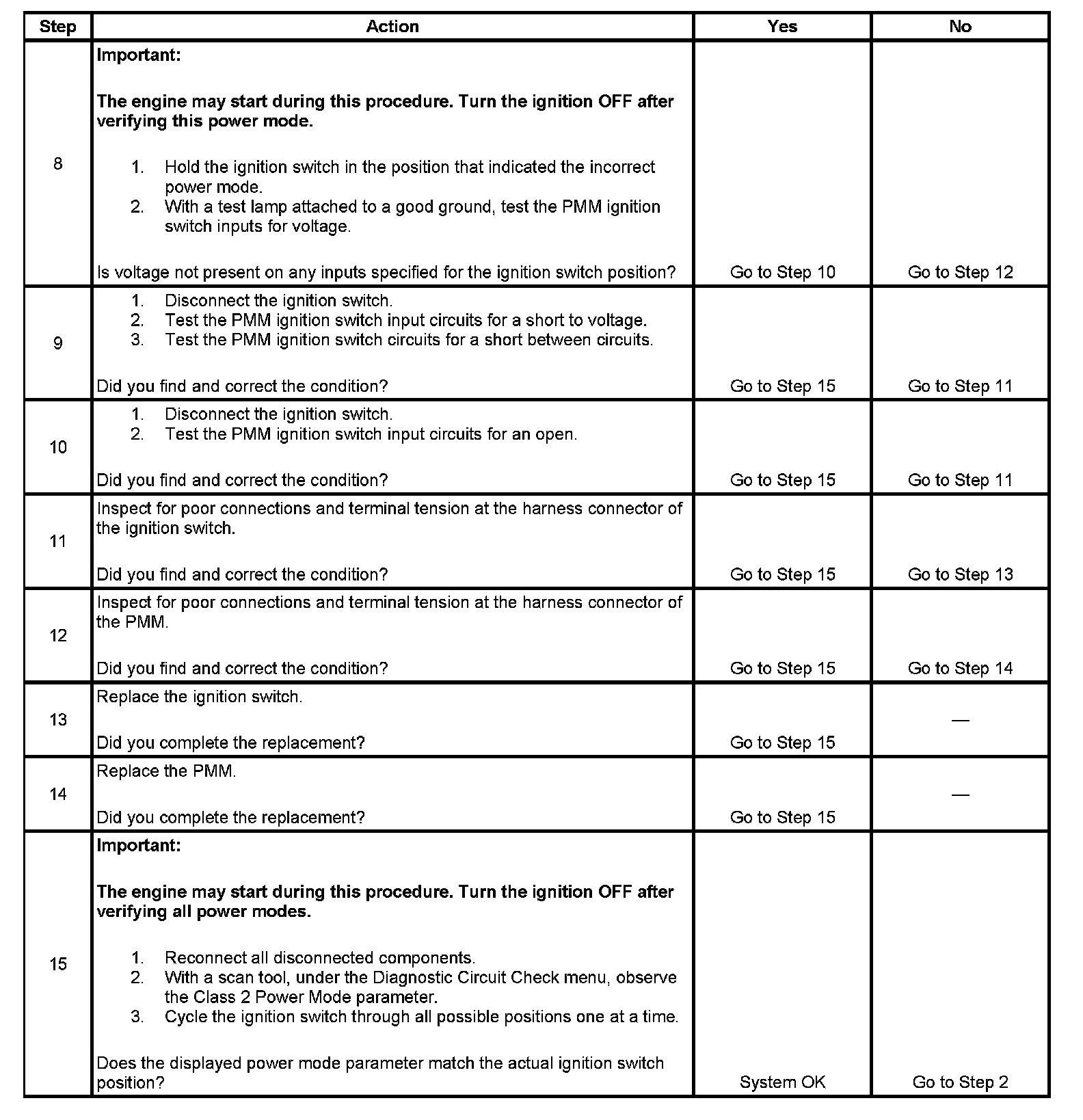 9. If any ignition switch parameters that should be inactive in the present ignition switch position are active, 2 ignition switch signal circuits may be shorted together.