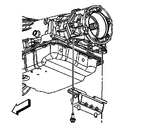 3. Lower the transmission and install the two nuts securing the transmission mount to the transmission support.