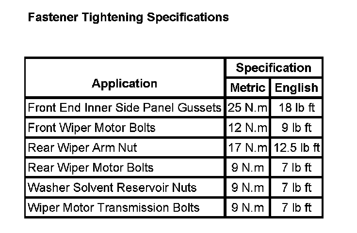 Wiper and Washer Systems: Specifications