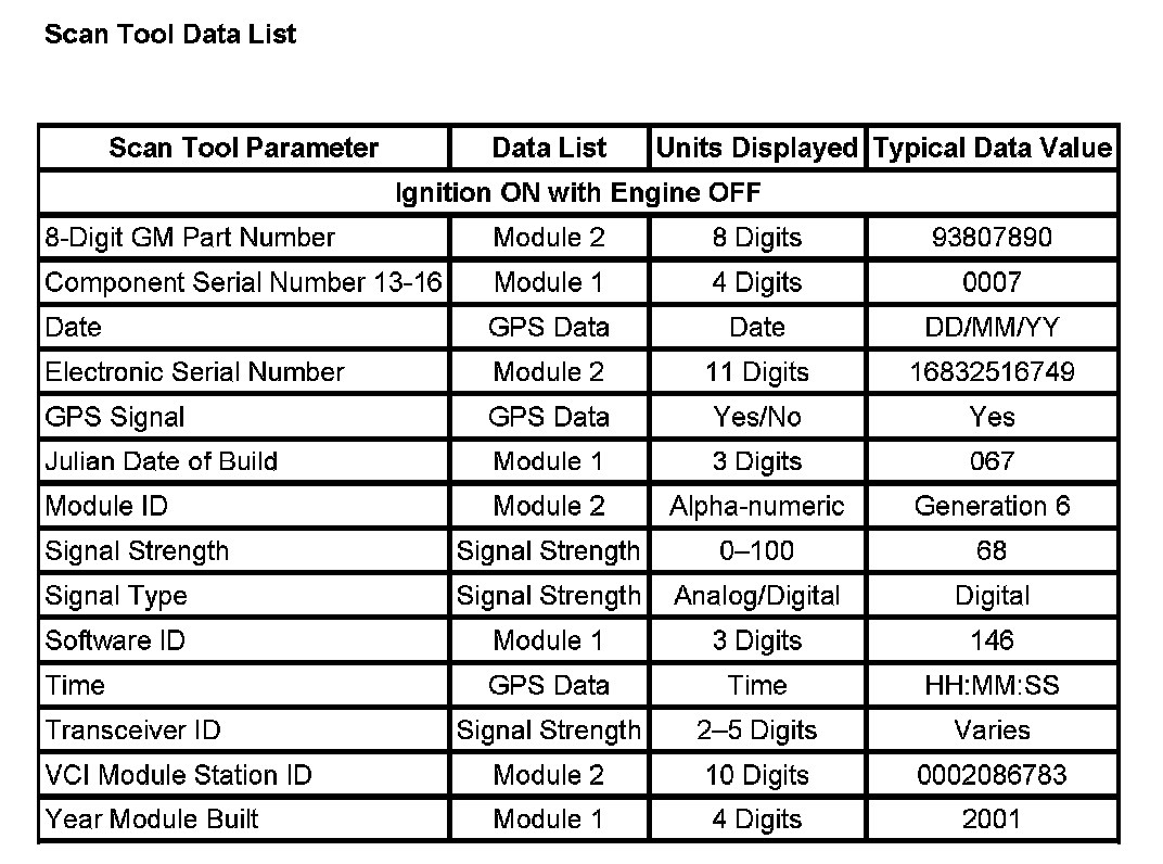 Scan Tool Data List: