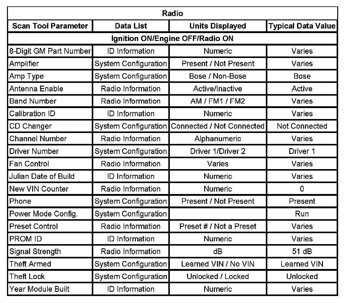 Scan Tool Data List