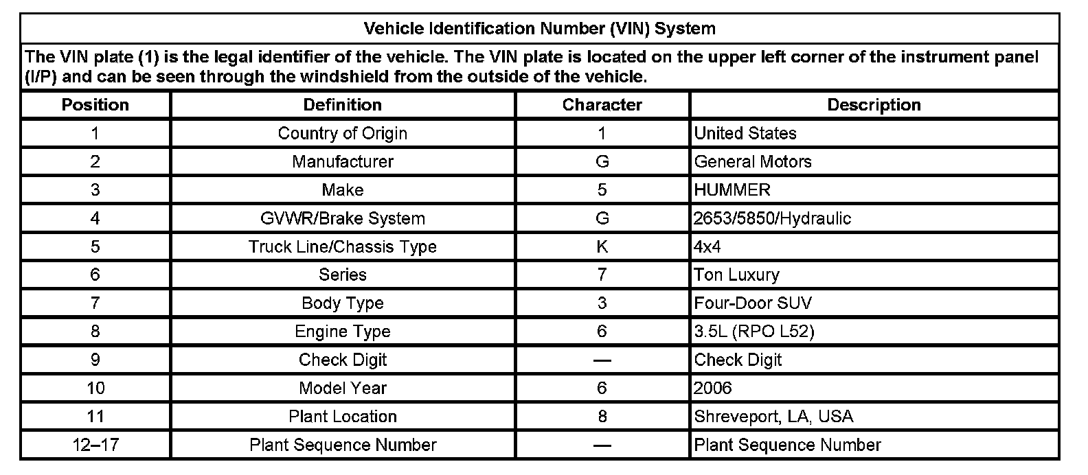 Vehicle Identification Number (VIN) System: