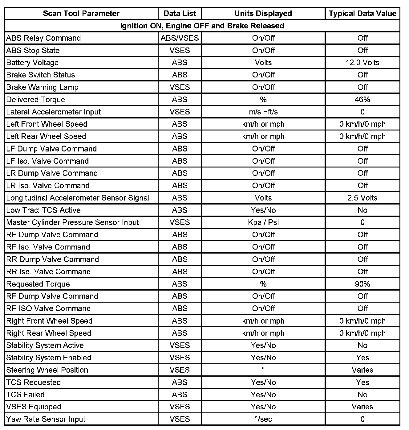 Scan Tool Data List