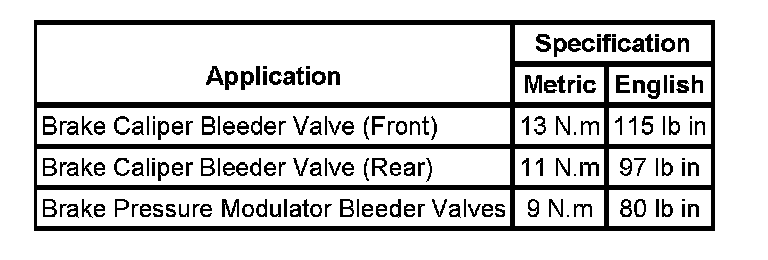 Brake Component Specifications: