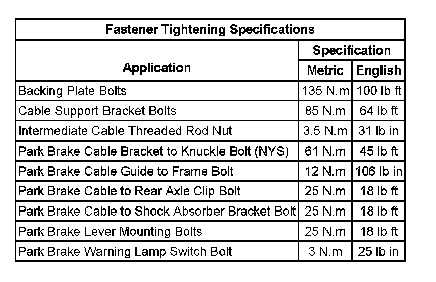 Parking Brake System: Specifications