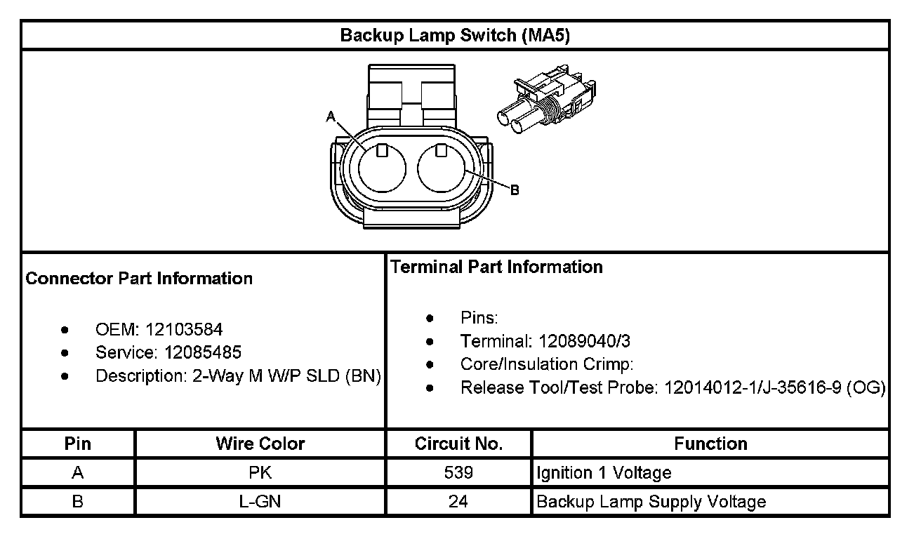 Backup Lamp Switch (With RPO Code MA5):