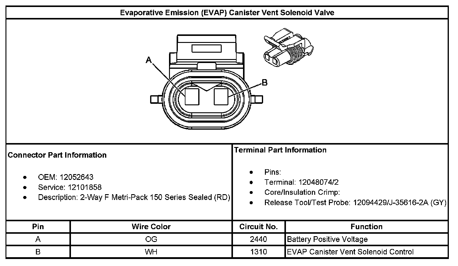 Evaporative Emission (EVAP) Canister Vent Solenoid Valve: