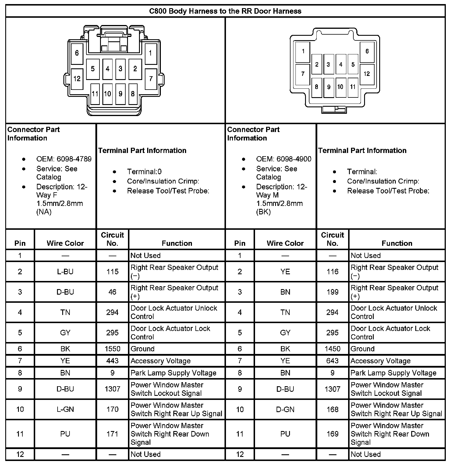 C800 Body Harness To The RR Door Harness: