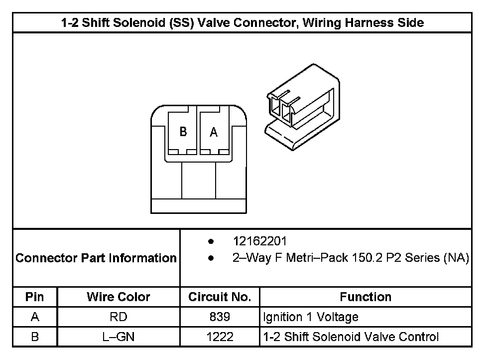 1-2 Shift Solenoid Valve Connector, Wiring Harness Side: