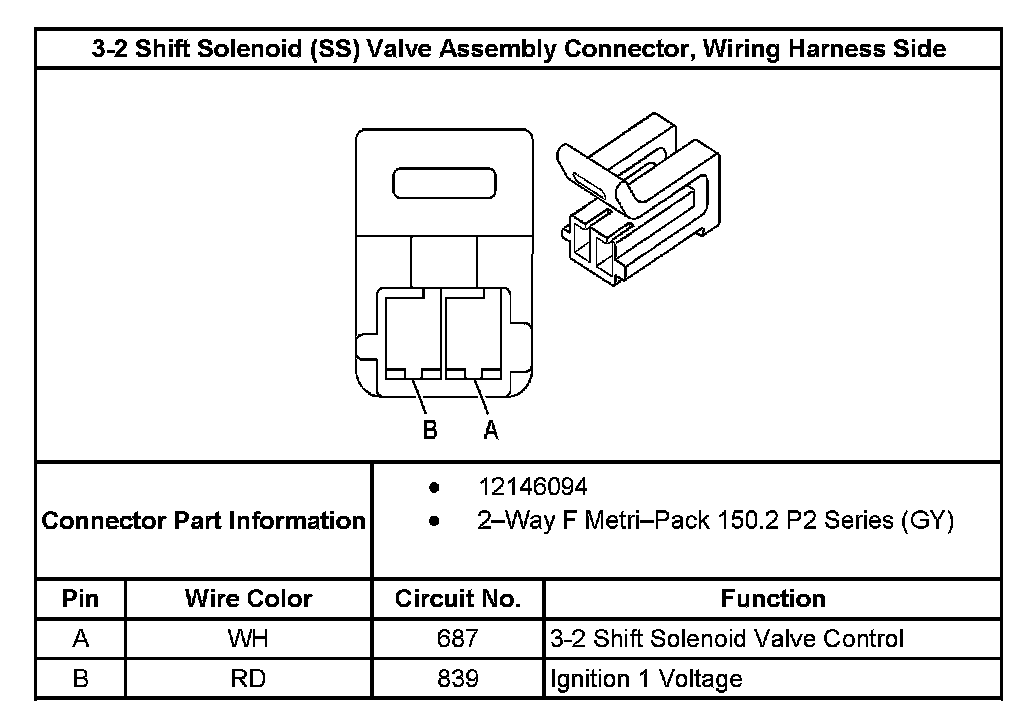 3-2 Shift Solenoid Valve Connector, Wiring Harness Side:
