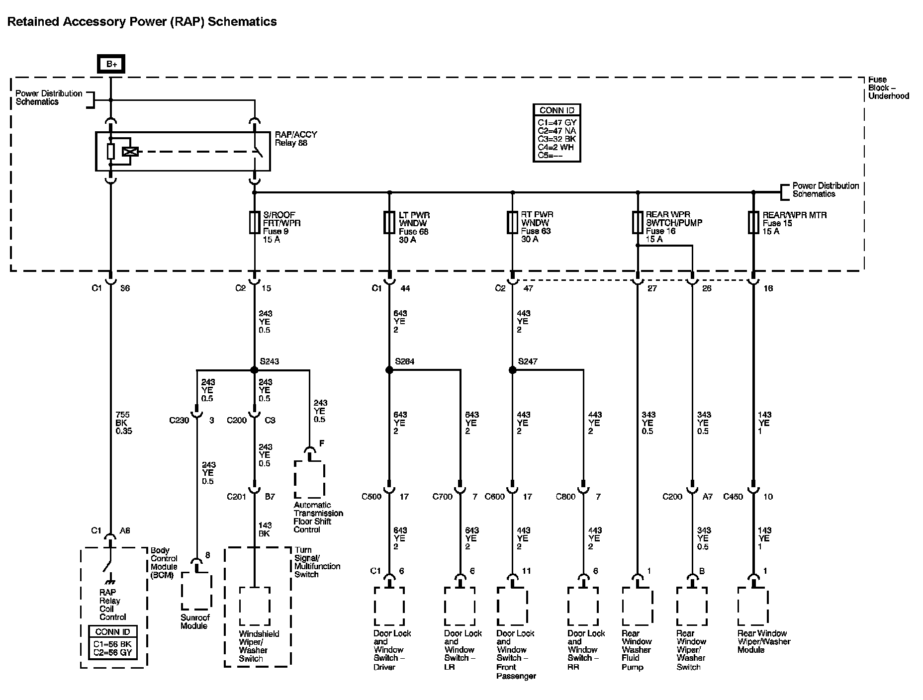 The location for the connectors, Grounds, Splices, and Grommets shown within these diagrams can be found via their numbers at Vehicle Locations.