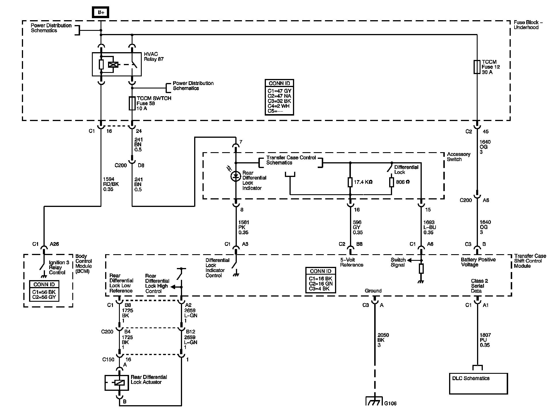 The locations for the Connectors, Ground, Splices, and Grommets shown within these diagrams can be found via their numbers at Vehicle Locations.