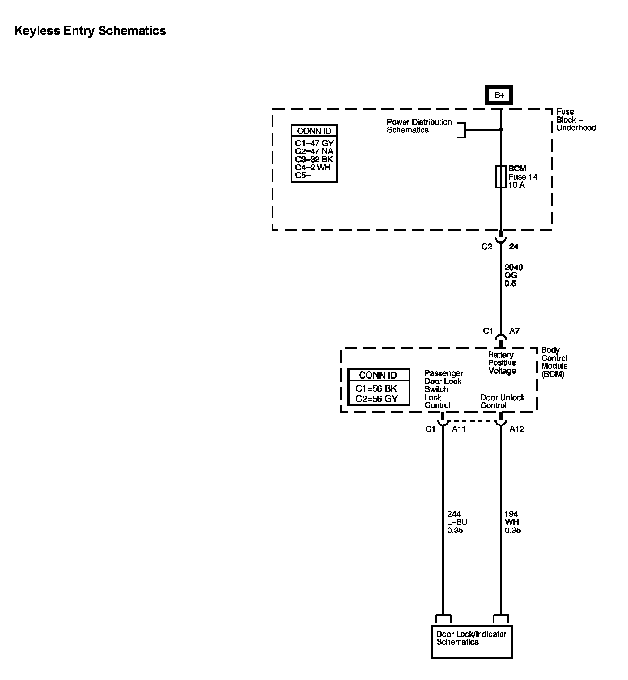 The location for the connectors, Grounds, Splices, and Grommets shown within these diagrams can be found via their numbers at Vehicle Locations.