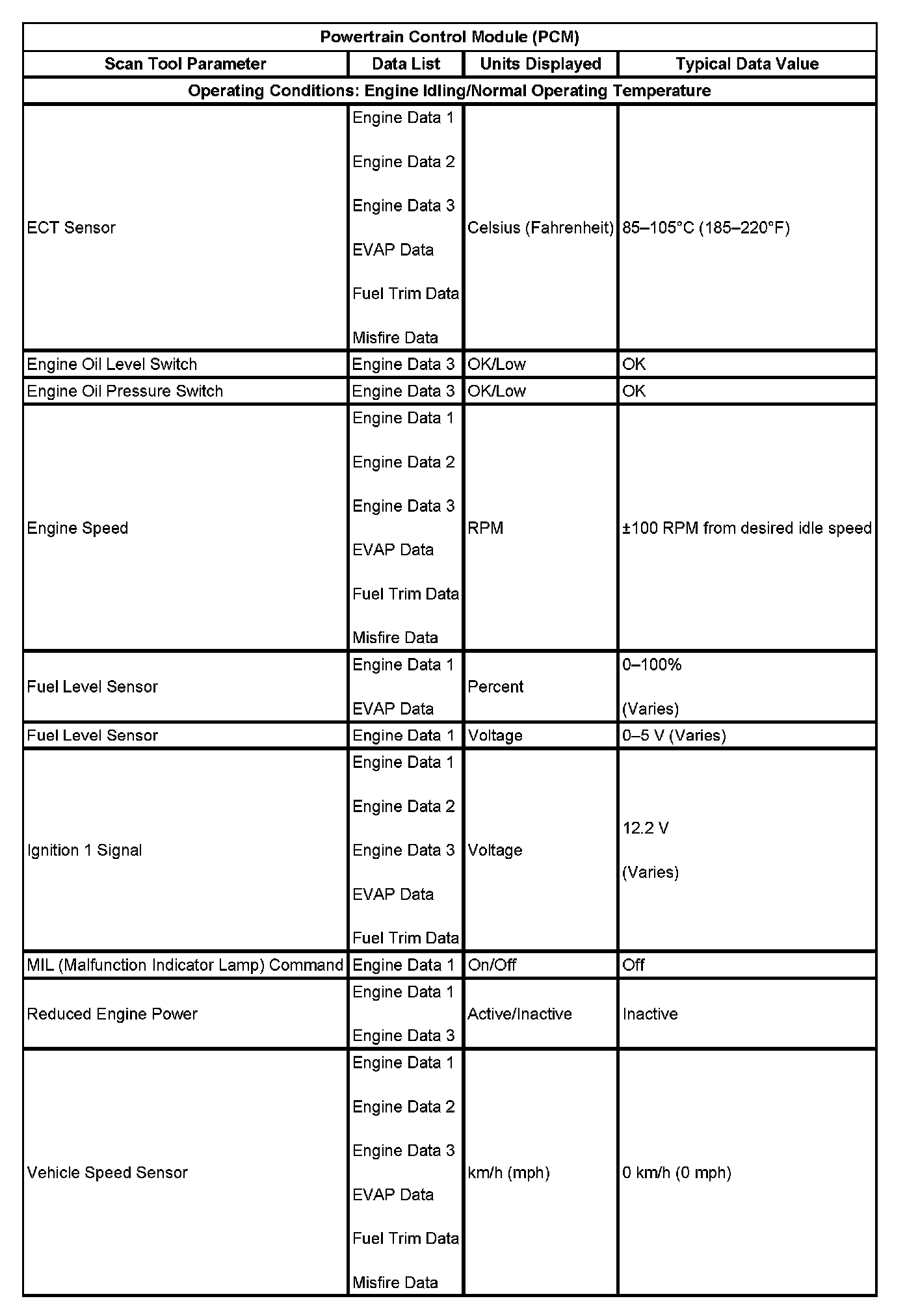 Scan Tool Data List