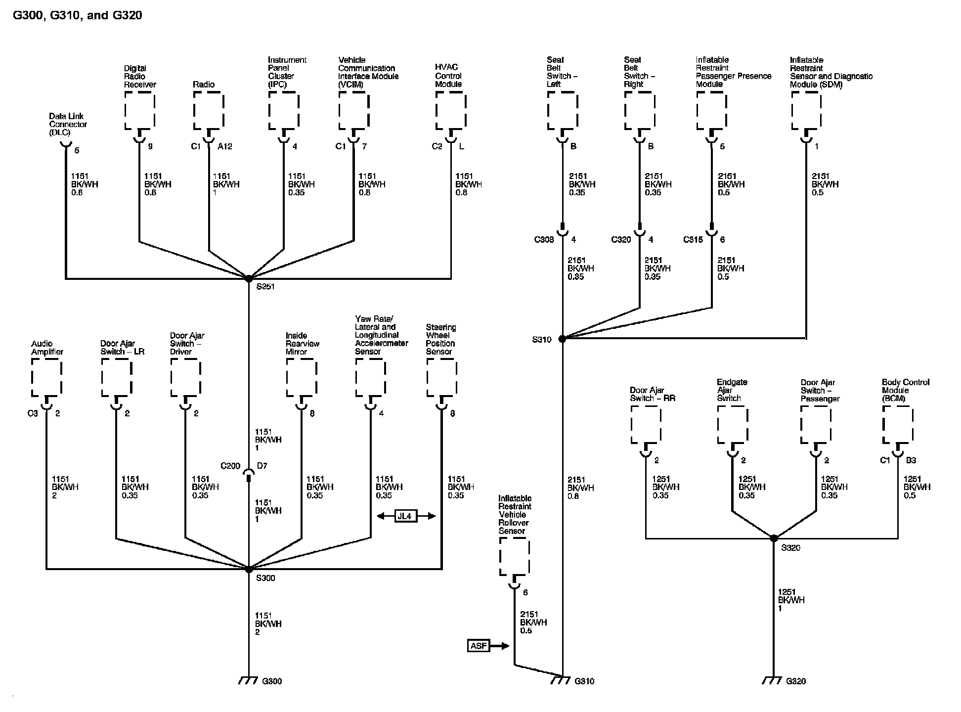 The locations for the Connectors, Grounds, Splices, and Grommets shown within these diagrams can be found via their numbers at Vehicle Locations.