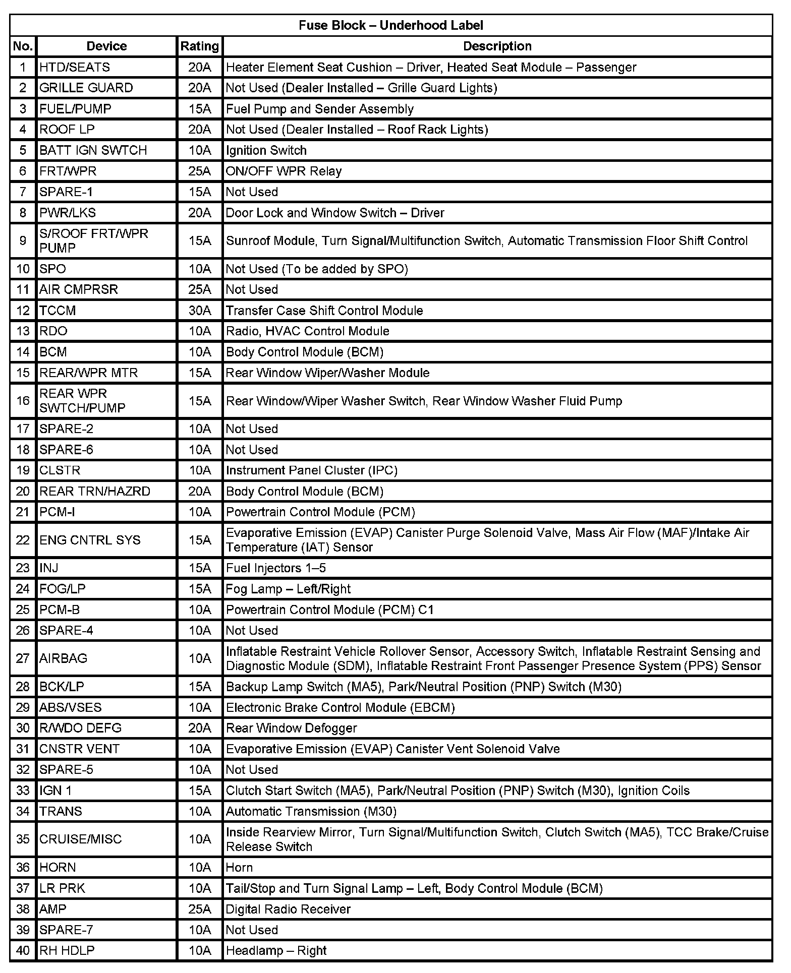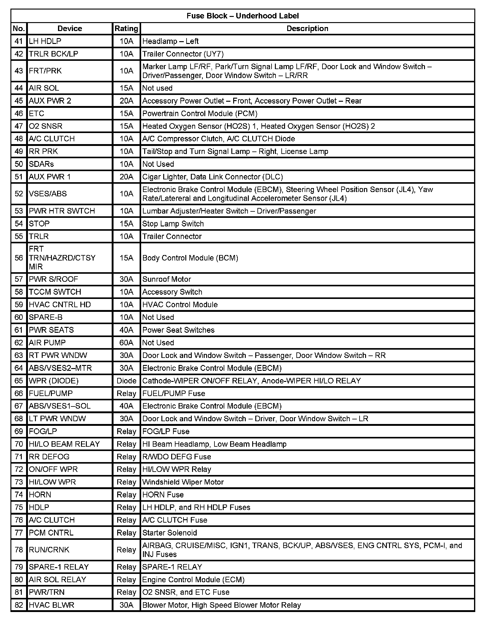 Application Table (Part 2):