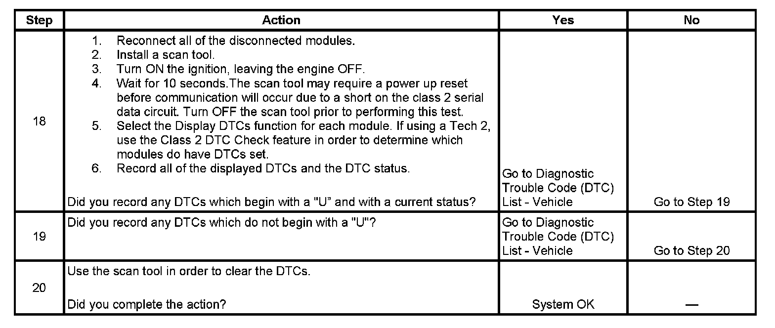 3. A partial malfunction in the class 2 serial data circuit uses a different procedure from a total malfunction of the class 2 serial data circuit. The following modules communicate on the class 2 serial data circuit: