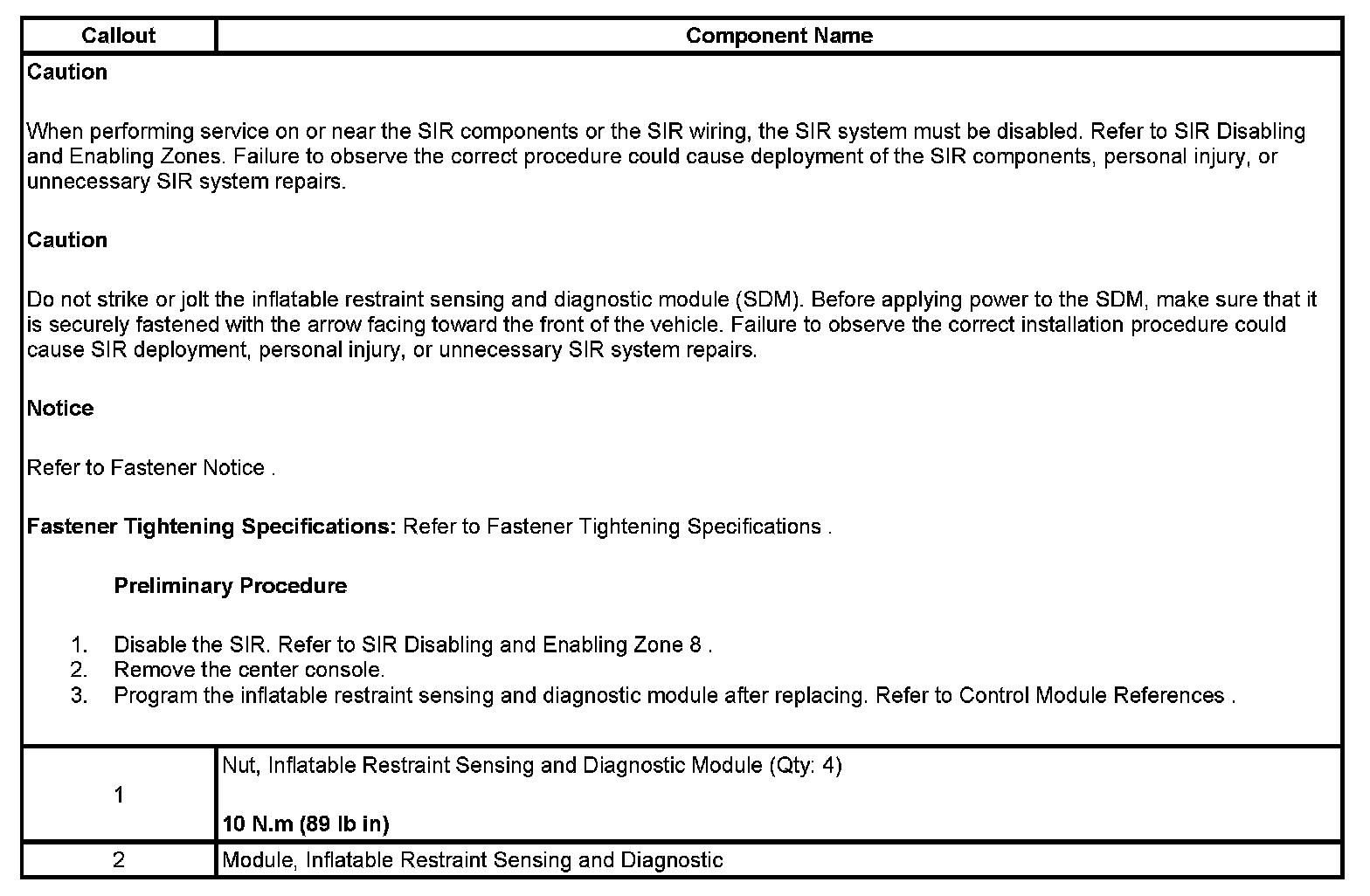Air Bag Control Module: Service and Repair