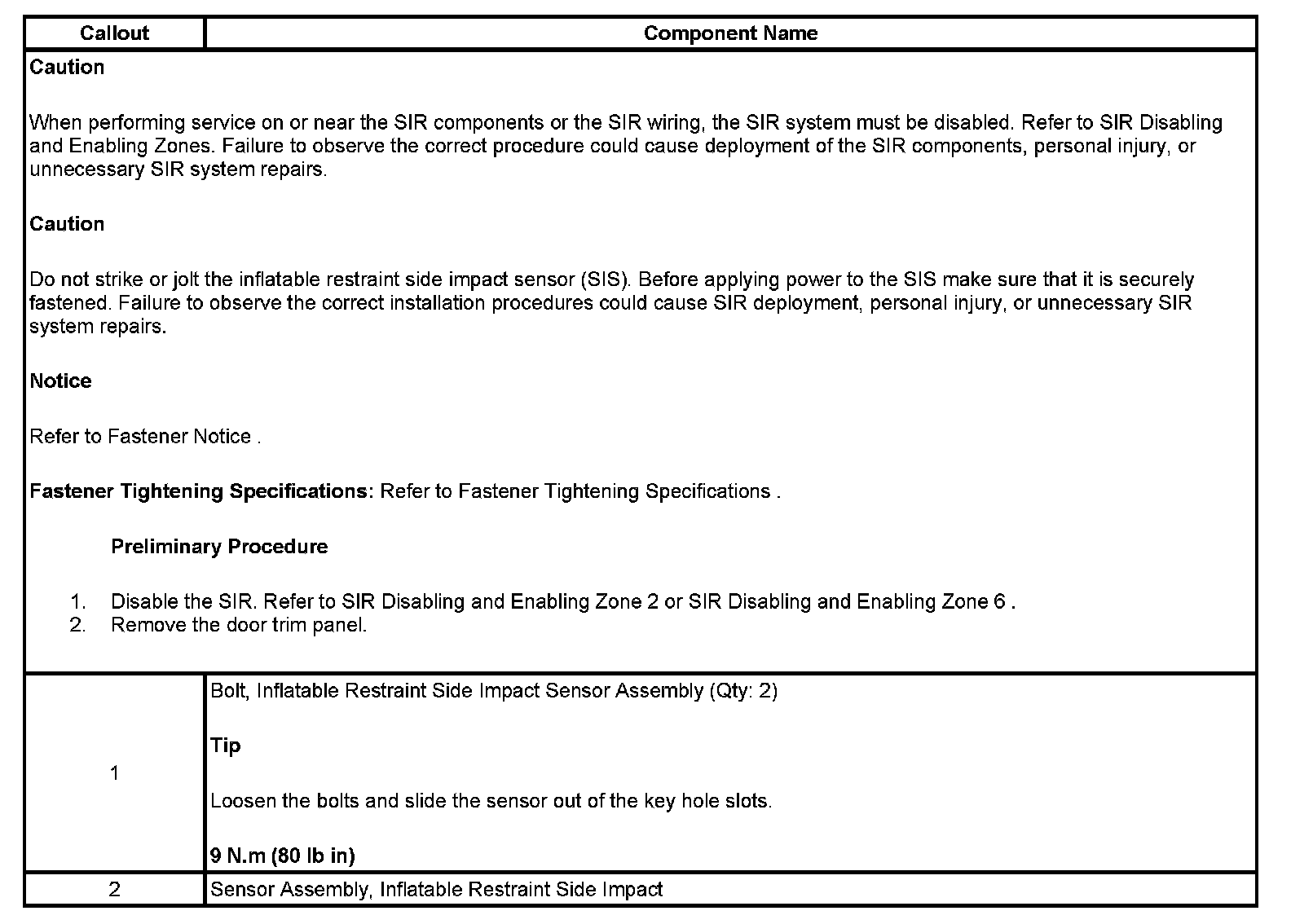 Inflatable Restraint Side Impact Sensor Replacement