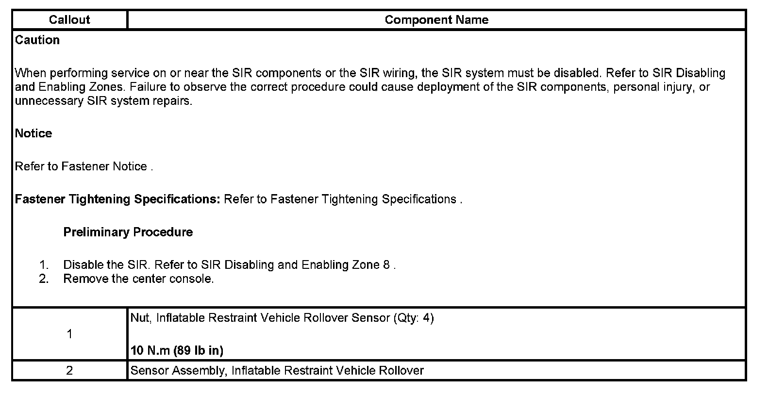 Inflatable Restraint Vehicle Rollover Sensor Replacement