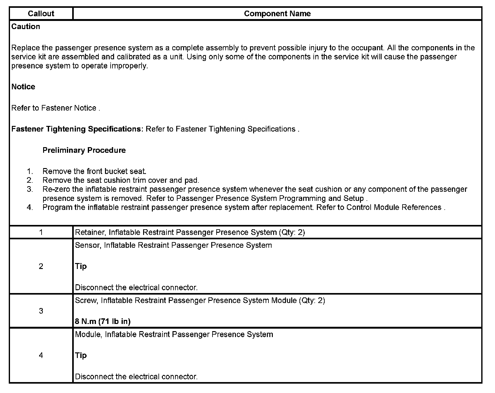 INFLATABLE RESTRAINT PASSENGER PRESENCE SYSTEM REPLACEMENT - FRONT