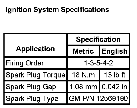 Ignition System Specifications: