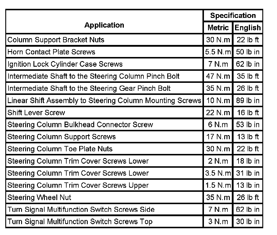 Fastener Tightening Specifications: