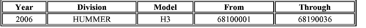 Involved are certain 2006 HUMMER H3 vehicles built within the VIN breakpoints shown.