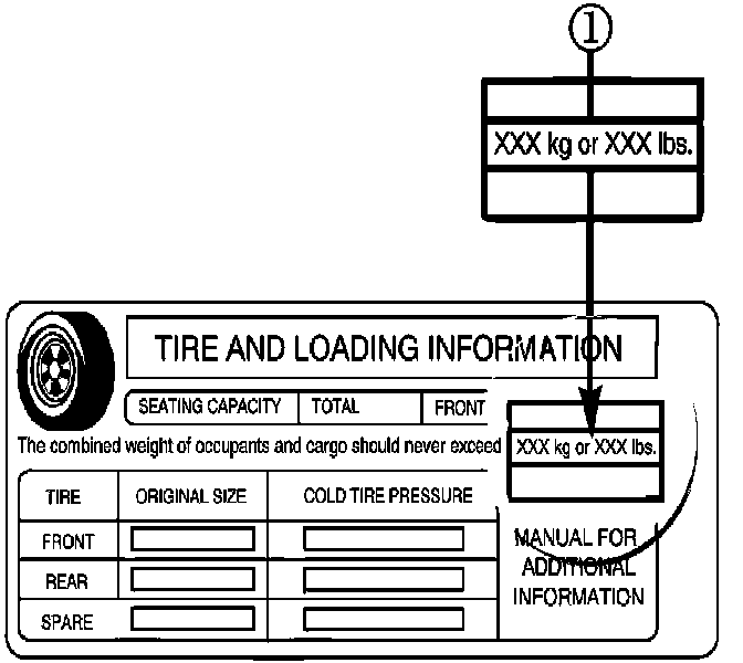 2. Locate the Tire and Loading Information Label. The label is attached below the door lock post (striker) on the pillar and should look like the above illustration.