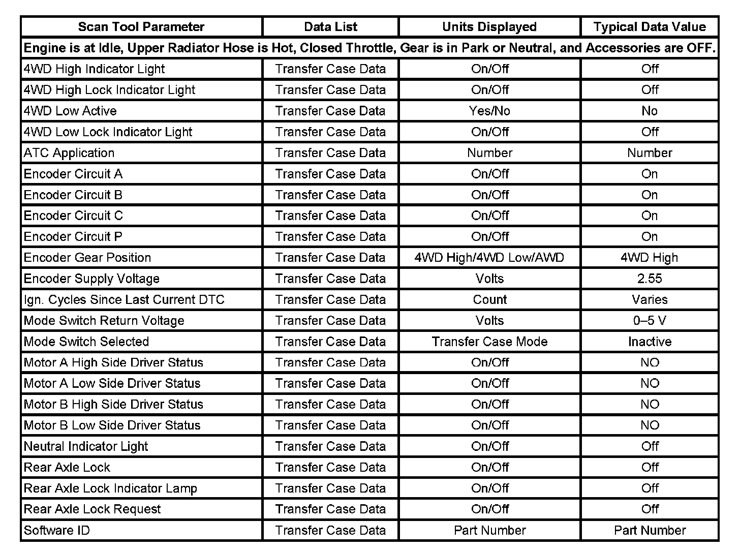 Scan Tool Data List: