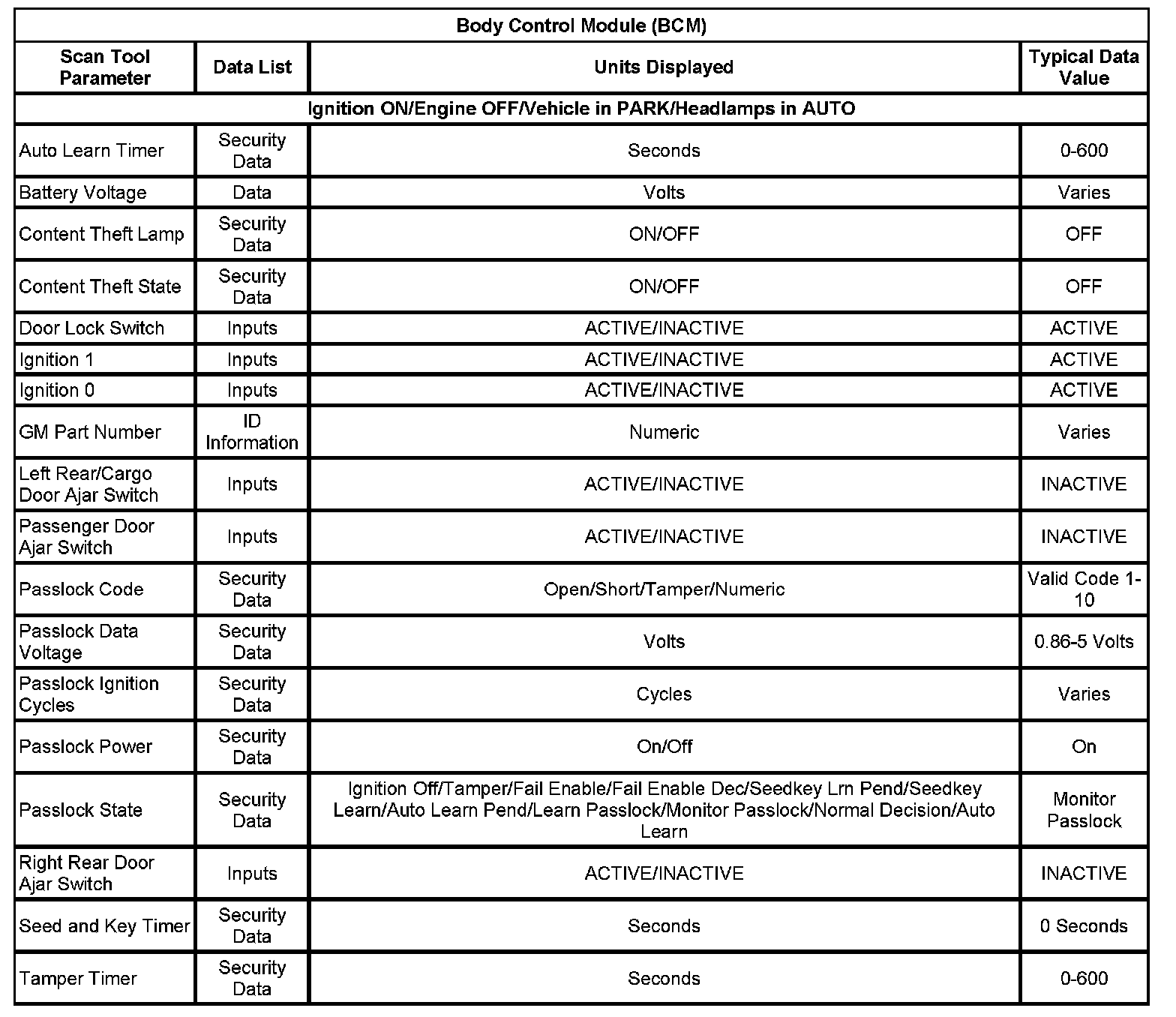 Scan Tool Data List