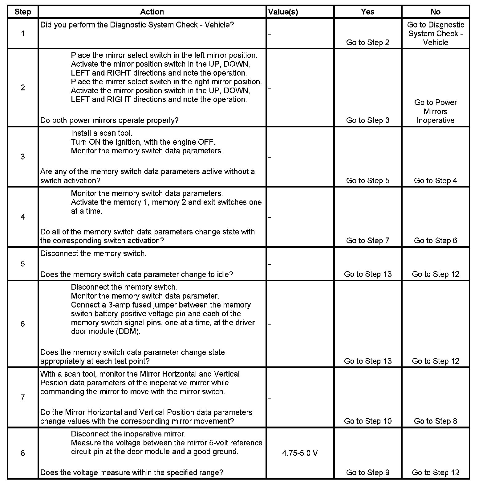 Power Mirrors - Memory Functions Inoperative