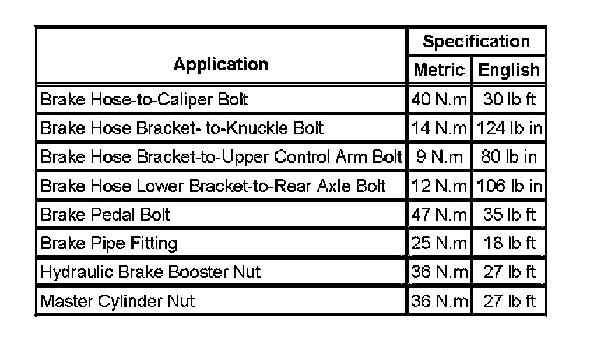 Fastener Tightening Specifications: