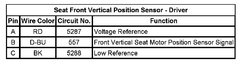 Seat Front Vertical Position Sensor - Driver