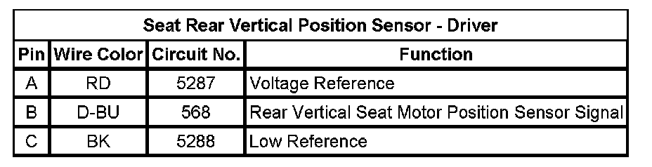 Seat Rear Vertical Position Sensor - Driver