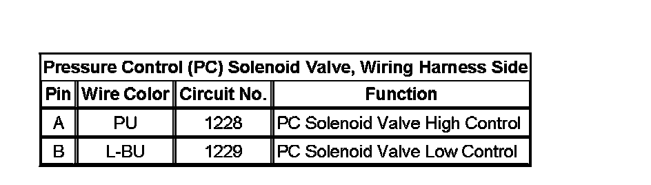 Pressure Control (PC) Solenoid Valve, Wiring Harness Side: