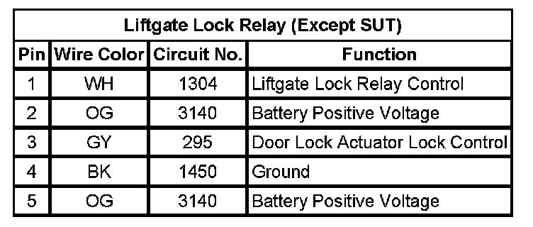 Liftgate Lock Relay (Except SUT)