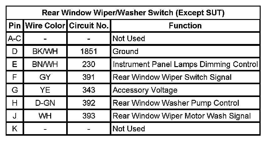 Rear Window Wiper/Washer Switch (Except SUT)