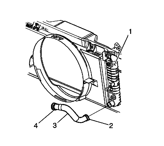 5. Install the radiator vent inlet hose (2) to the radiator.