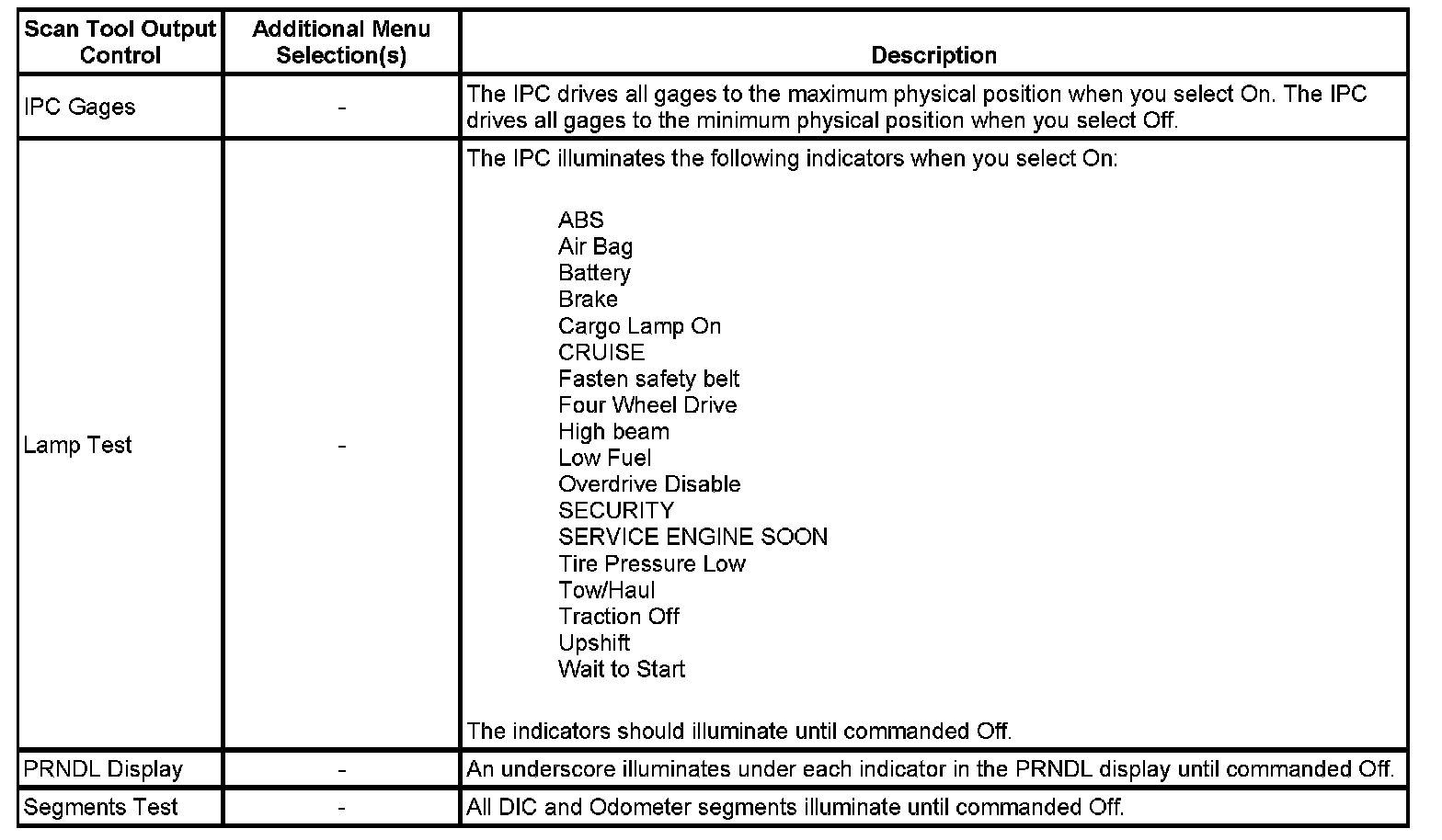 Scan Tool Output Controls