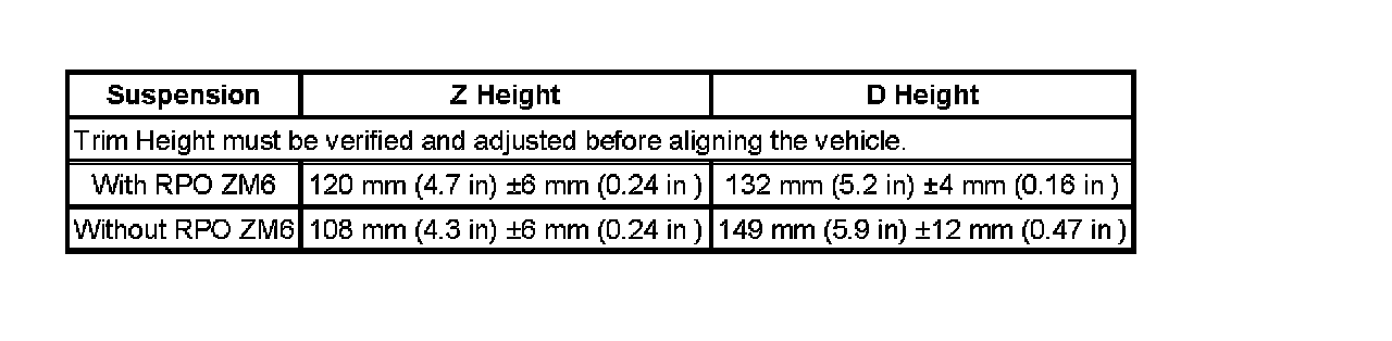 Trim Height Specifications: