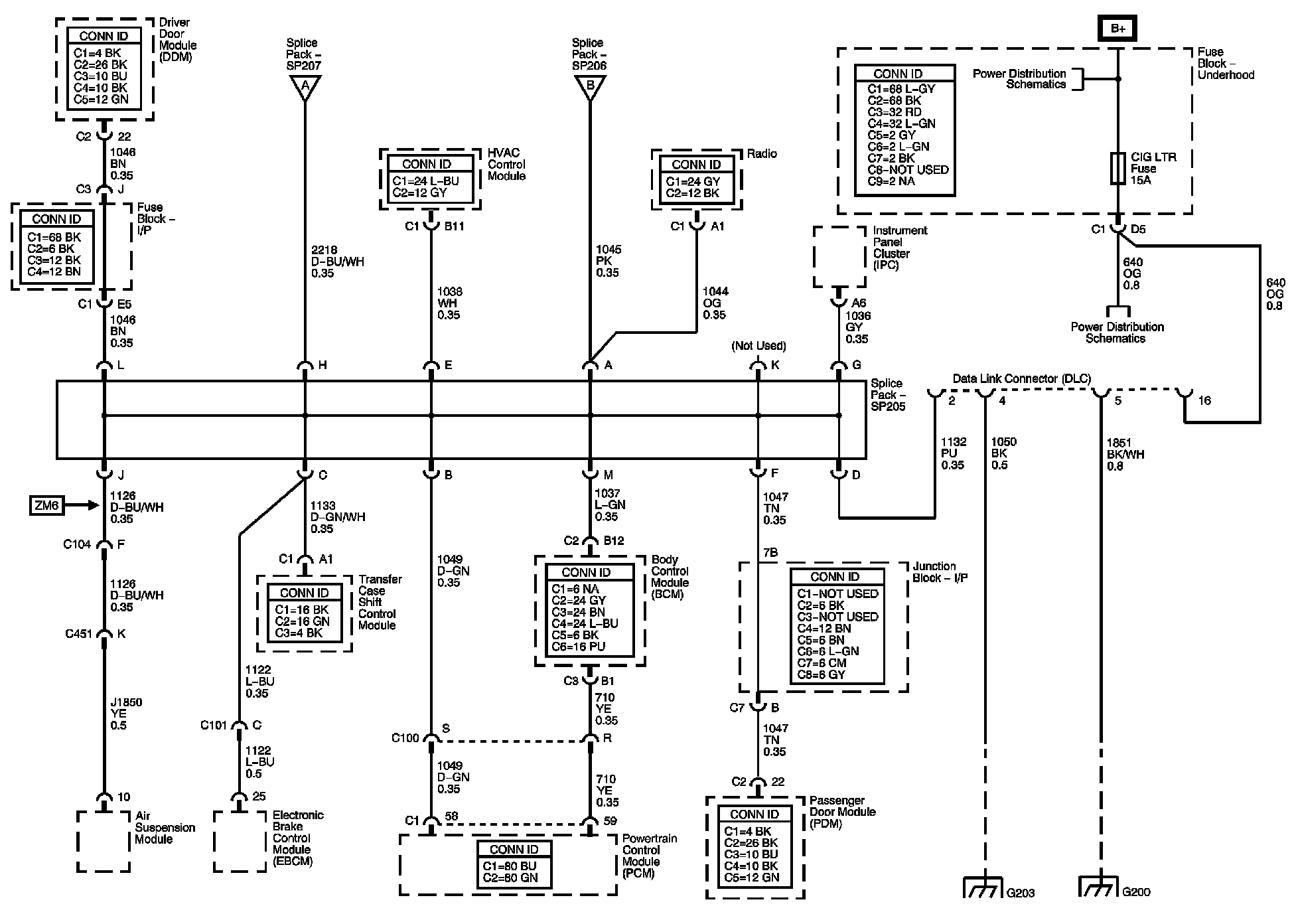 Locations: The locations for the Connectors, Grounds, Splices, and Grommets shown within these diagrams can be found via their numbers at Vehicle Locations. Locations